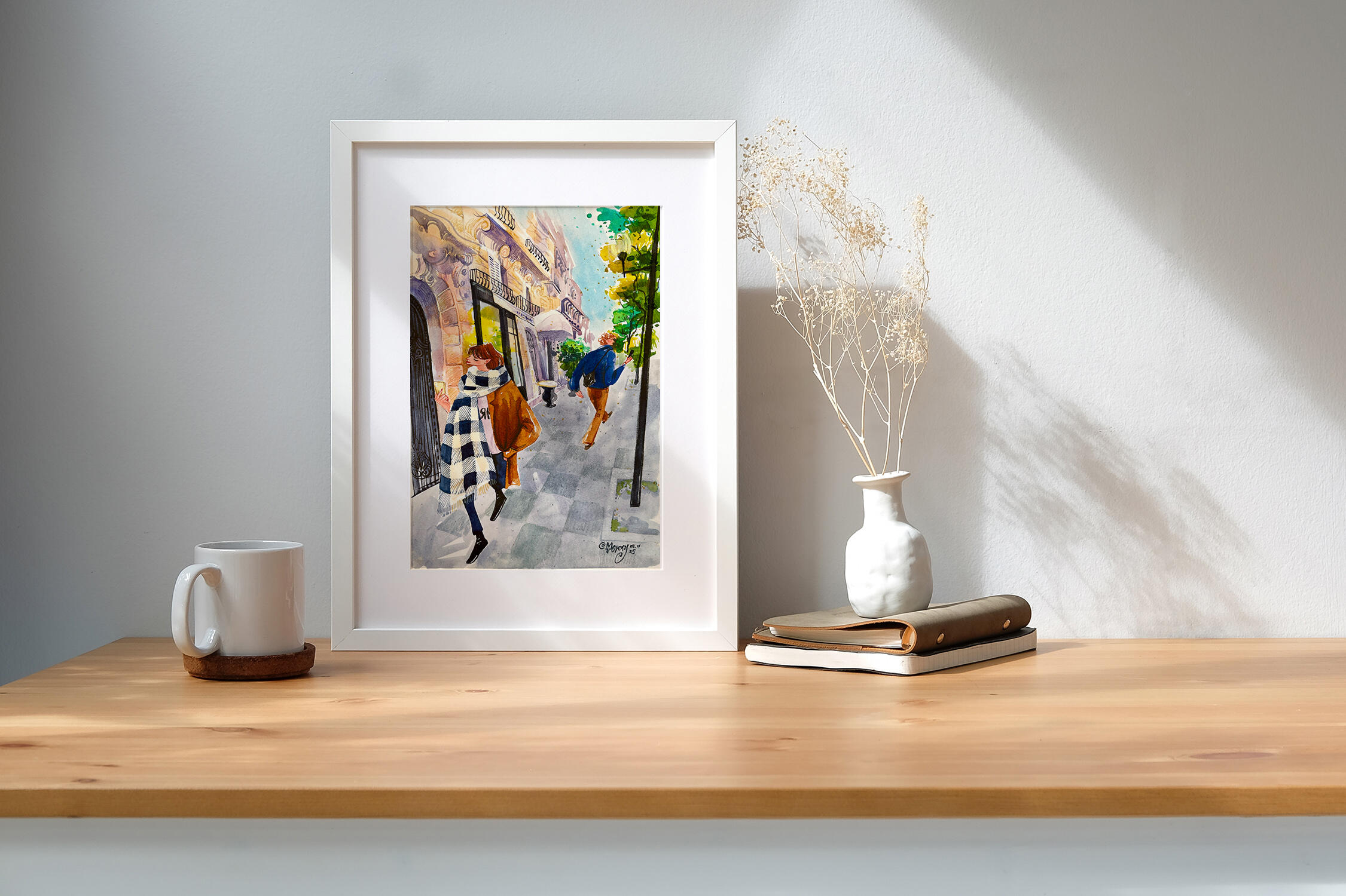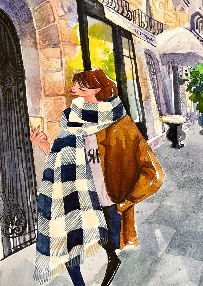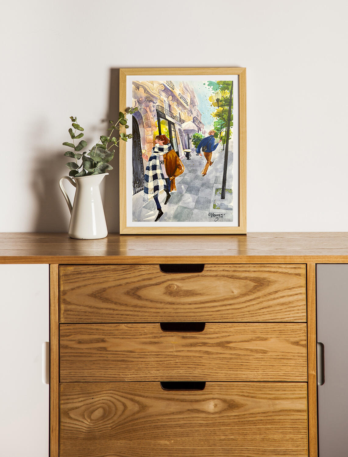 Une scène urbaine illustrée avec tendresse, où les personnages se croisent sans se voir, absorbés par leurs téléphones. “On se croise, mais on ne se retrouve pas”: une réflexion poétique sur la solitude connectée et les rencontres manquées.