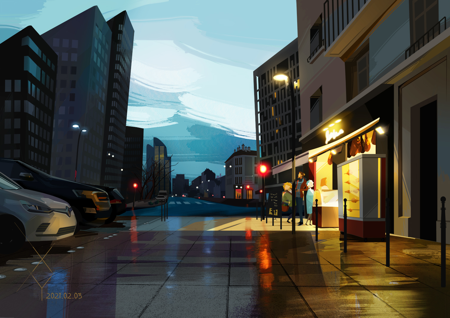 Devant la boucherie